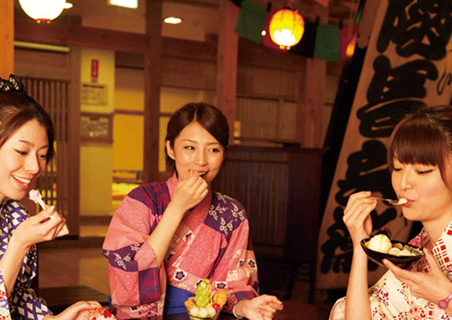 ▲ 에도시대에 온 것 같은 느낌을 주는 오오에도 온천을 유카타를 입고 즐겨보세요.